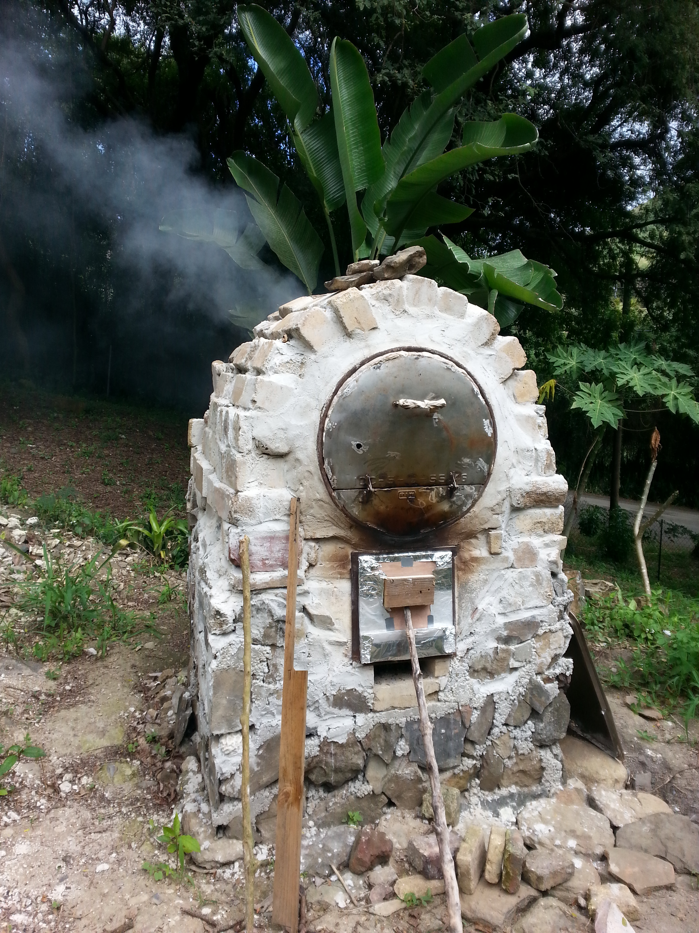 It’s three weeks to the day since I arrived on St Croix, beaten down from 30+ hours of flights and airports, feeling that it would take weeks to recover from such an ordeal. However, recovery of that nature was not to be, and instead I’ve been ever so hard at work. I’ve cleared my home site, trimmed the tree above it, re-cleared the site, staked out the foundation, and dug nearly halfway around the perimeter where the foundation wall will sit. But that is all for another post, another day. For today has been a big, exciting day, on which I built from the previous experimentation with the bread oven, and baked a real, production-size batch of sourdough bread in our home-built, wood-fired oven!