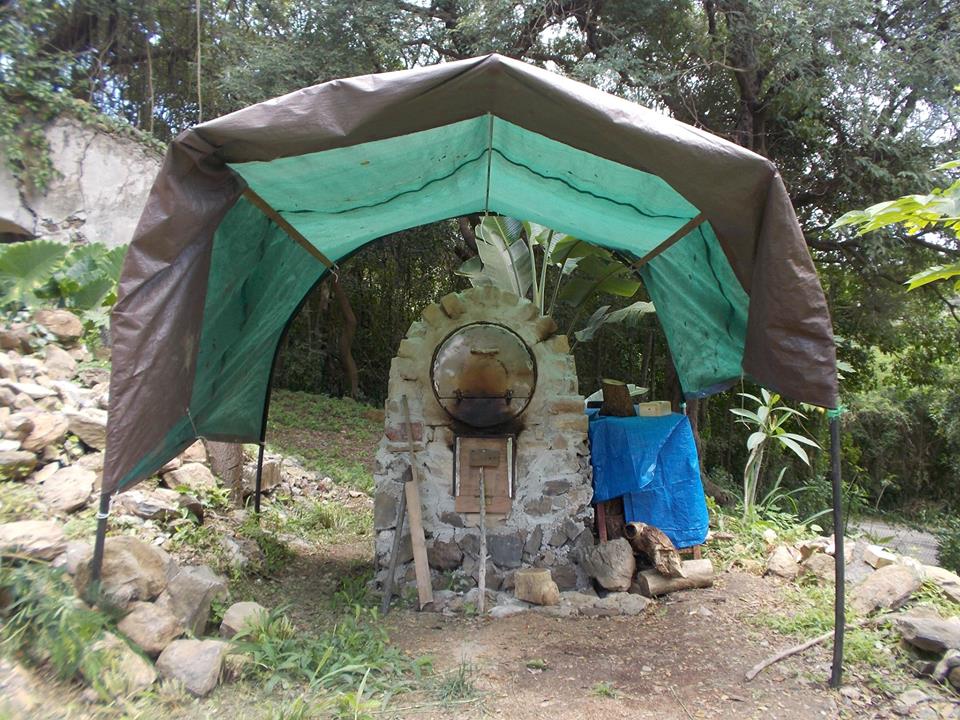 Building progress was a tad slow this week, thanks to a day of the ‘flu and subsequent exhaustion. Perhaps it’s just reached that point where I need a few days’ break, yet we all know that will not happen for I am far too motivated to possibly take more than one day at a time off! Despite everything, Mandy and I were able to get the stone foundation wall up to an appropriate height to set in the wooden posts, and those have all been measured for positioning and length, now it’s just up to me to accumulate the last few posts before I may raise them and brace them in place. Once that has been accomplished I’ll be able to put the very last course of stone around the posts – bedding them in – and then will move on up to the bamboo lathes and building in the loft and “furniture” before breaking out the plaster.