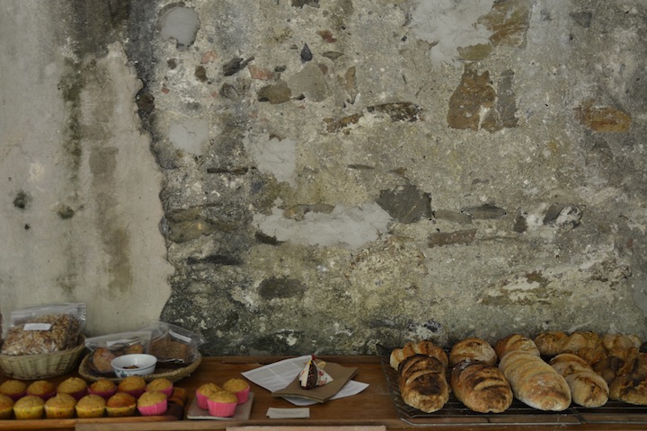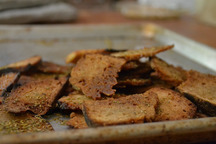 Speaking of things going well, today’s baking was amazing! Everything went smoothly, from getting up and kneading the sourdough at 5:30am to lighting the oven, baking a huge variety of dishes and successfully controlling the oven temperature for about 8 hours on very little wood. We had four stalks of bananas come ripe this week – that’s some 60+lbs of banana – so banana bread was the first thing to go in the oven, at around 8am, along with some trays of Tiny House Toasties (crispy rosemary-olive oil sourdough slices). Then a tray of veggies, followed by two batches of sourdough – some of the best yet – beef stew, and last of all, granola and pumpkin seeds. All I can say is that 8 hours of baking is a very long time and takes an awful lot of energy! Yet once the oven is hot it seems wasteful to not use the heat as much as possible, thus the bake-day has come to be.
