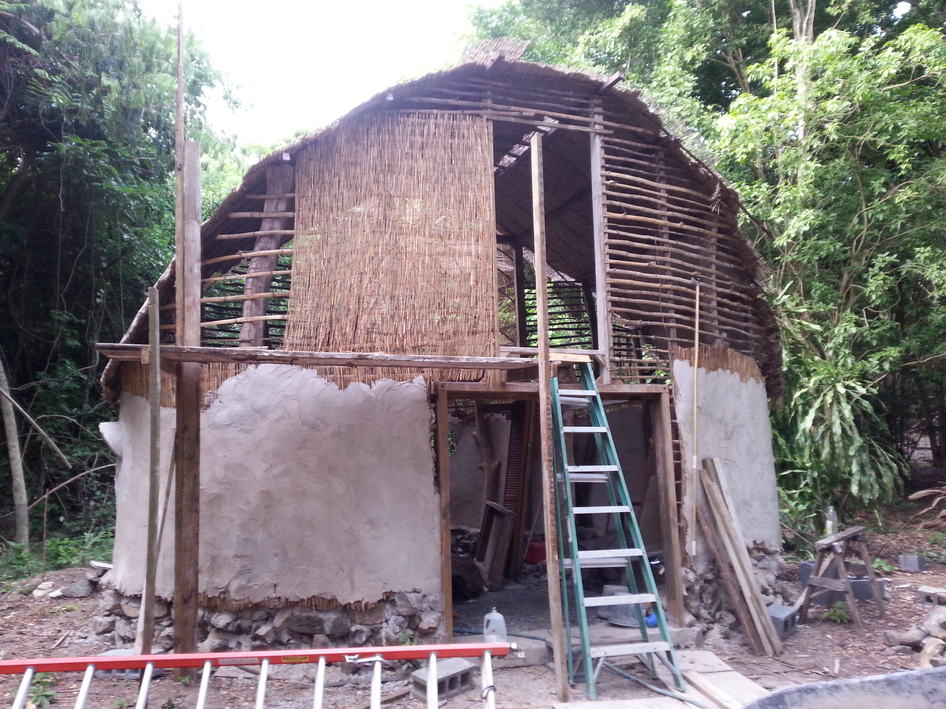 wpid-20140908_120920.jpg      wpid-20140909_133349.jpg wpid-20140909_165346.jpg   wpid-20140908_100855.jpg    wpid-20140906_175557.jpg wpid-20140906_175537.jpg wpid-20140906_175528.jpg wpid-20140906_175454.jpgWe hit a huge milestone with the Nid this week: the walls are plastered up to about 6 feet all the way around! We’ve already built a scaffold and put reed matting up on one of the upper front sections, so come tomorrow we’ll be plastering the first upper section of wall. I’ve also started to work on the plumbing (2″ drain pipes, 3/4″ supply pipes), utilizing the trenches that Landen worked so hard on digging a month or so back. Alas, my geometry was a little off, so I’m having to do a little extra digging before the pipes can actually be installed. Best way to learn, huh?