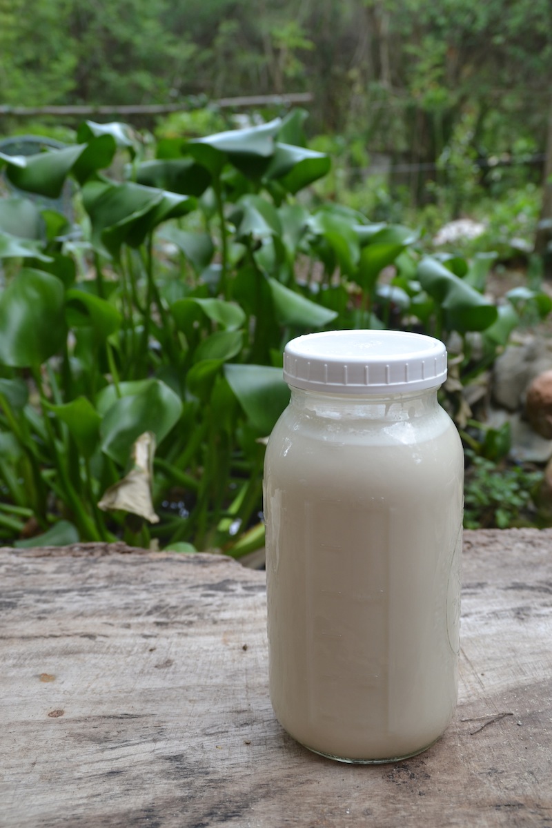 Back to milk making. I’ve been trying to avoid dairy for allergy reasons – and the lack of a local, natural milk supply – so I decided to try making my own oat, rice, or almond milk so that I might control what it contains. As I’ve mentioned before, we do make coconut milk, but I find that it is far too heavy for daily use, and I find the coconut flavour to be overpowering. As it turns out, non-dairy milk is easy (and cheap) to make! The same method goes for all, except that rice has to be cooked before starting the process, and that for almond milk you only need about 1/2C almonds for 8C milk.
